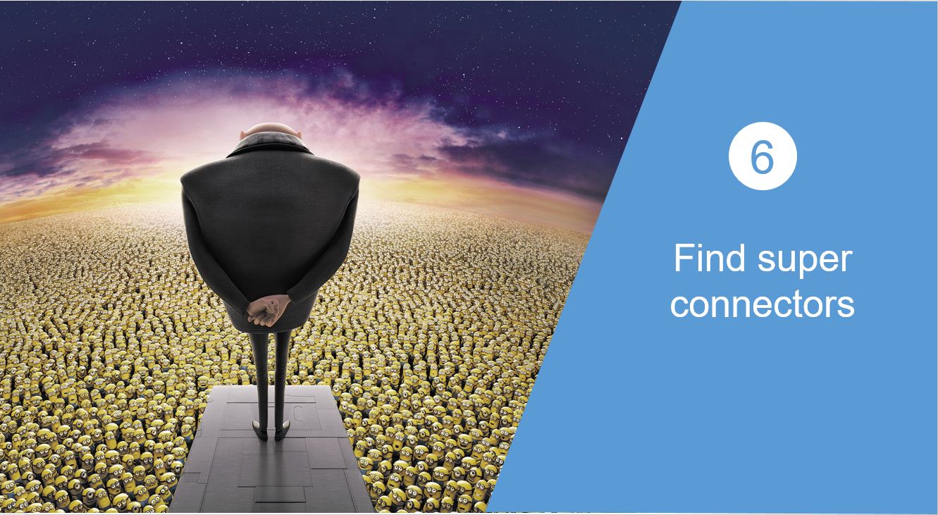 This is the idea behind what Shane Snow calls superconnecting, the act of making mass connections by tapping into hubs with many spokes.